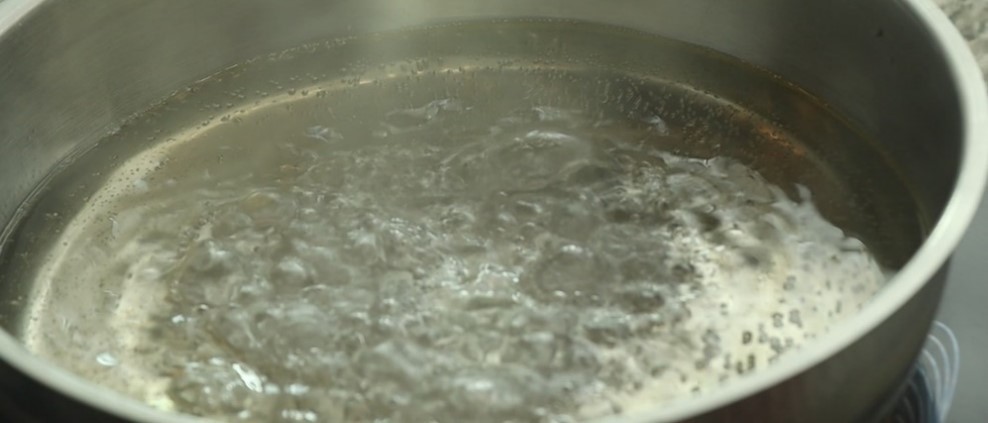 - ابتدا آب و روغن را روی اینداکشن یا اجاق داخل ظرف میریزیم و میگذاریم به دمای جوشیدن برسد .(دمای اجاق 120)