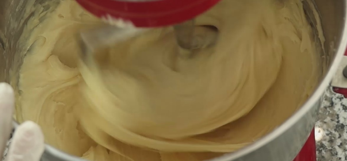 - پس از خنک شدن خمیر ، تخم مرغ ها دانه دانه اضافه شود .در هر مرحله با سری میکسر دیواره پاتیل را بتراشید تا خمیری یک دست داشته باشید .سرعت متوسط.