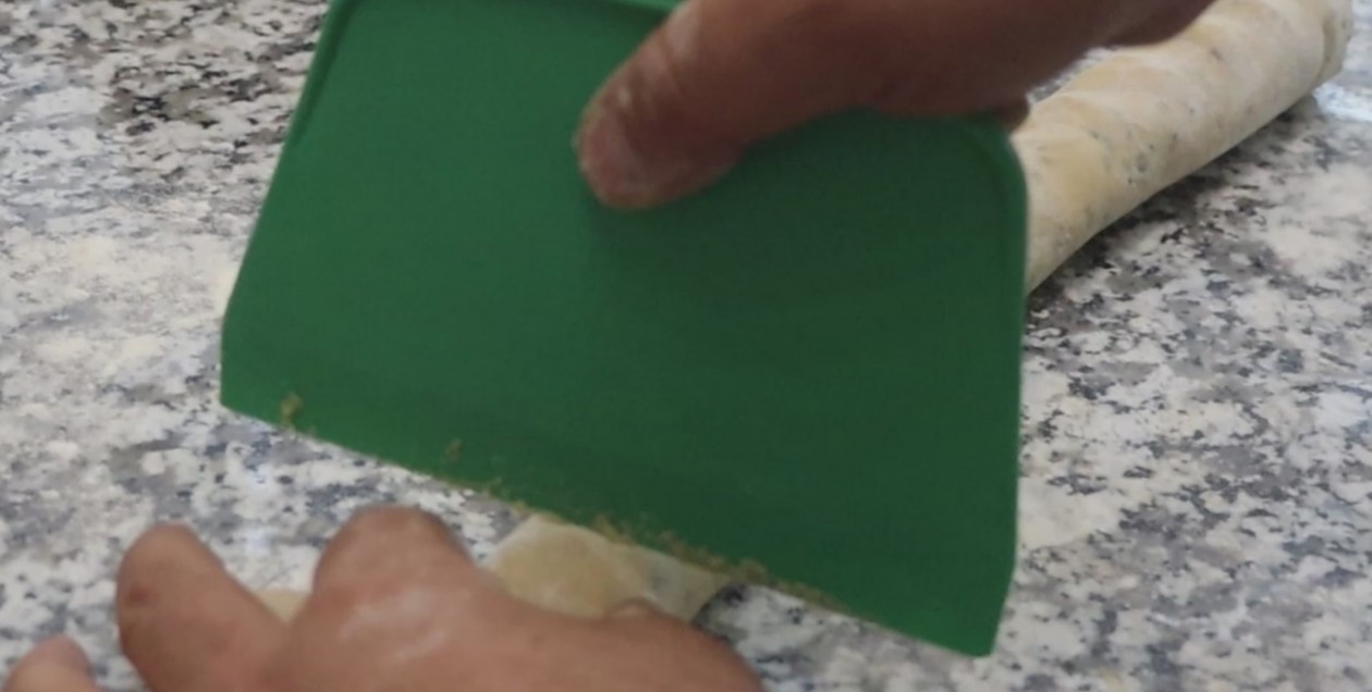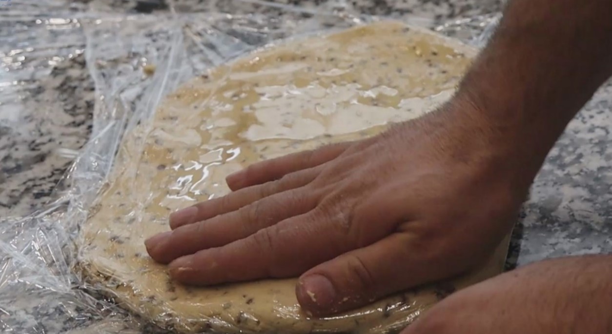 • خمیر را روی سلفون پهن کنید و به مدت یک ساعت در یخچال نگهداری کنید تا خنک شود.